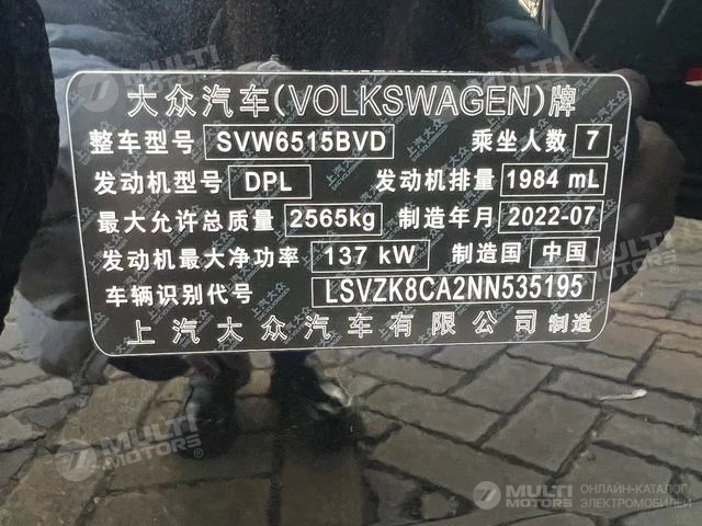 ОБЩИЕ ХАРАКТЕРИСТИКИ Volkswagen Tourang 2022 (61000 км)