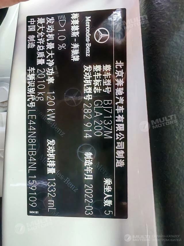 ОБЩИЕ ХАРАКТЕРИСТИКИ Mercedes-Benz GLA 2022 (50600 км)