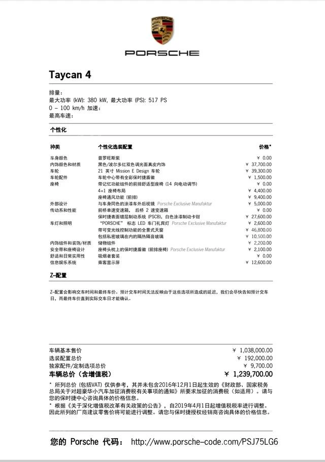 Комплектация: Taycan