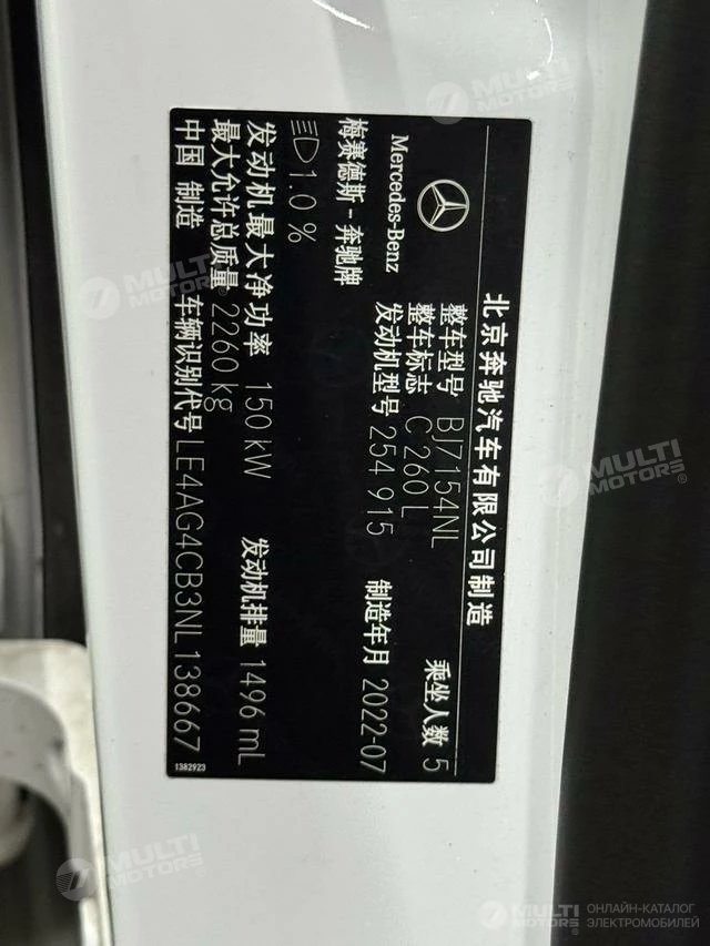 ОБЩИЕ ХАРАКТЕРИСТИКИ Mercedes-Benz C-class 2022 (24000 км)