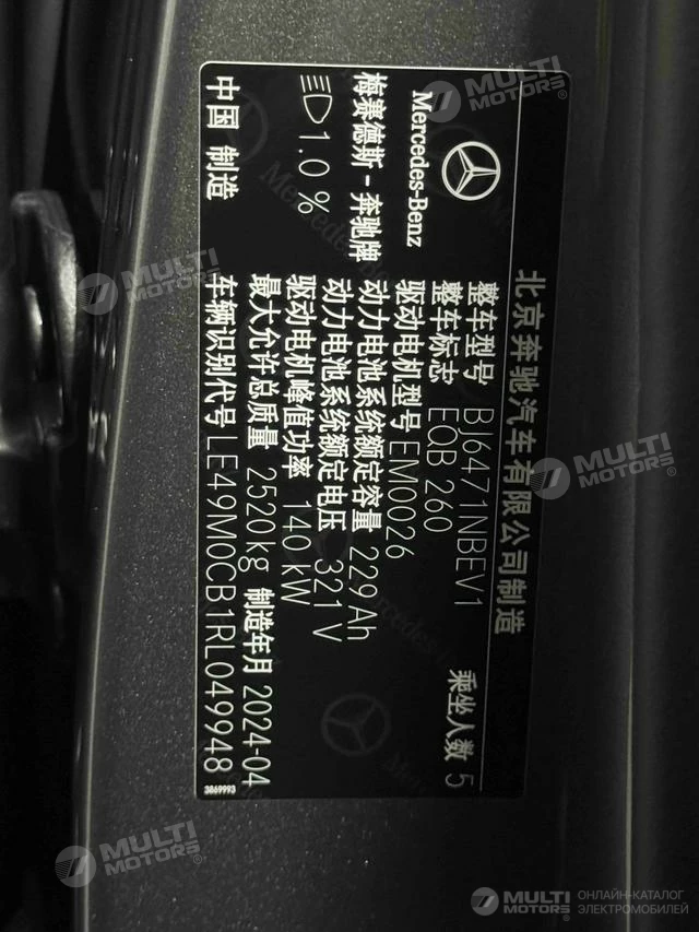 ОБЩИЕ ХАРАКТЕРИСТИКИ Mercedes-Benz EQB 2025 (4000 км)