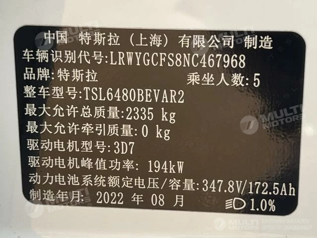 ОБЩИЕ ХАРАКТЕРИСТИКИ Tesla Model Y 2022 (55000 км)