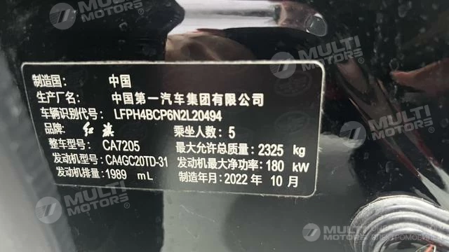 ОБЩИЕ ХАРАКТЕРИСТИКИ Hongqi H9 2022 (24700 км)