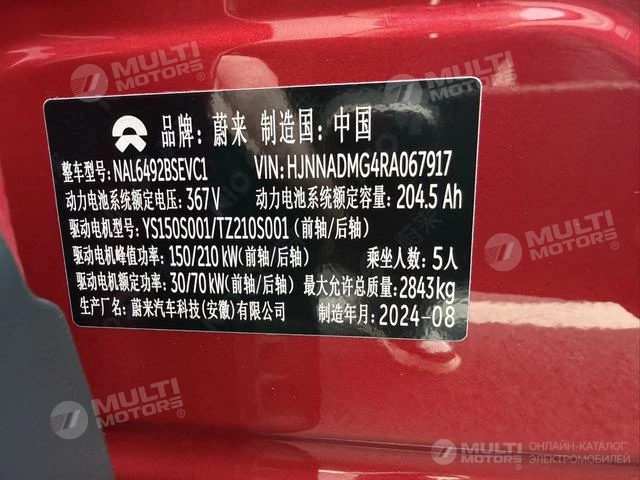 ОБЩИЕ ХАРАКТЕРИСТИКИ NIO ES6 2024 (34000 км)