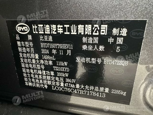 ОБЩИЕ ХАРАКТЕРИСТИКИ BYD Han DM 2025 (9600 км)