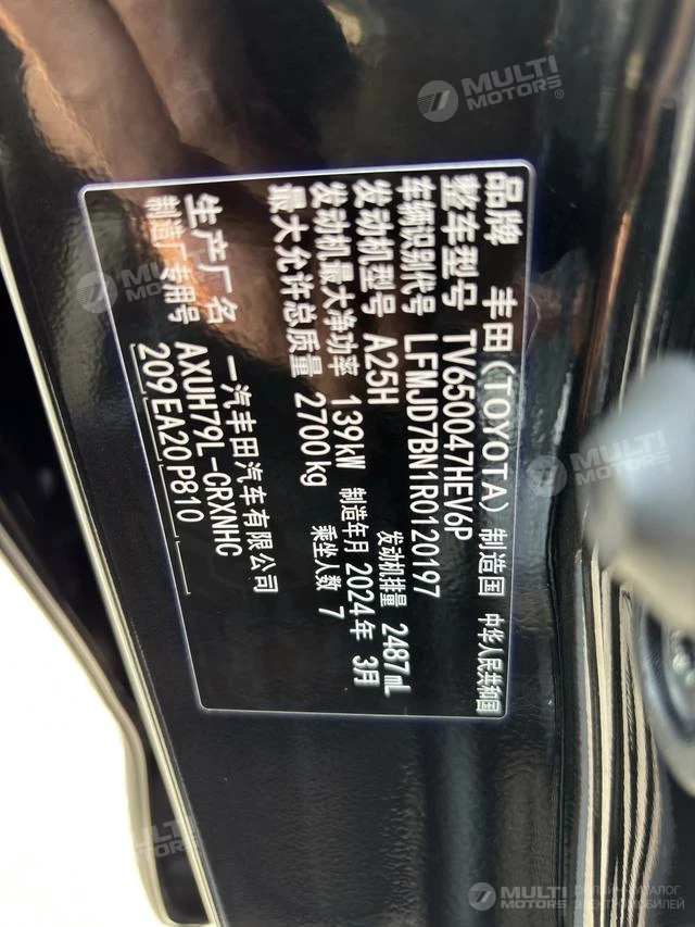 ОБЩИЕ ХАРАКТЕРИСТИКИ TOYOTA Crown Kluger 2024 (35000 км)