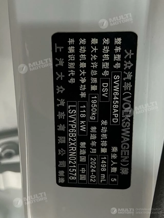 ОБЩИЕ ХАРАКТЕРИСТИКИ Volkswagen Tharu 2024 (6500 км)