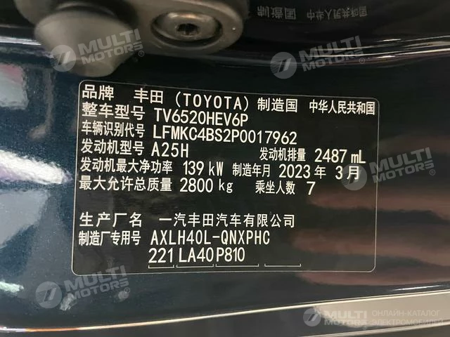 ОБЩИЕ ХАРАКТЕРИСТИКИ TOYOTA Granvia 2023 (22100 км)