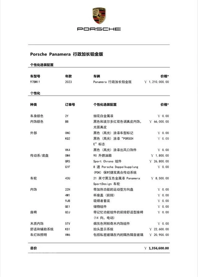 Комплектация: Panamera Executive Extended Platinum 2.9T