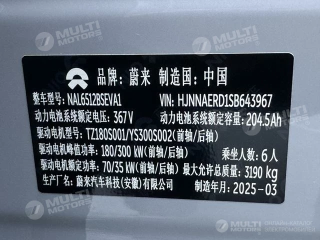 ОБЩИЕ ХАРАКТЕРИСТИКИ NIO ES8 2024 (100 км)