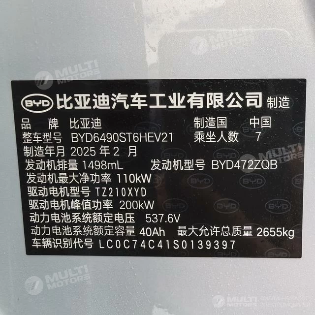 ОБЩИЕ ХАРАКТЕРИСТИКИ BYD Tang DM 2025 (4000 км)