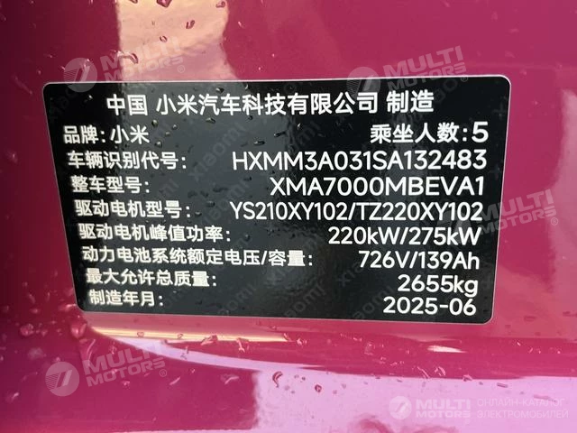 ОБЩИЕ ХАРАКТЕРИСТИКИ Xiaomi SU7 2024 (5100 км)