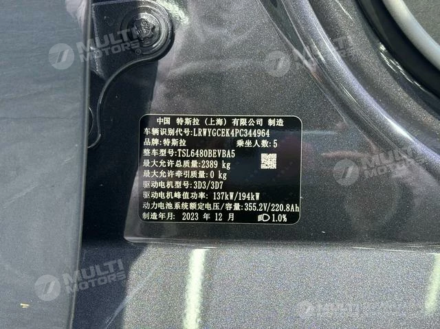 ОБЩИЕ ХАРАКТЕРИСТИКИ Tesla Model Y 2023 (15400 км)