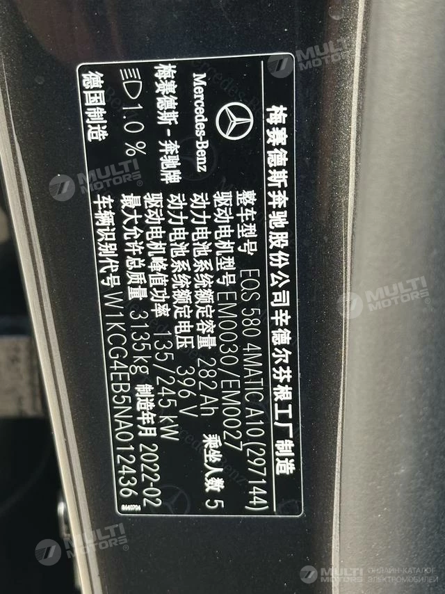 ОБЩИЕ ХАРАКТЕРИСТИКИ Mercedes-Benz EQS 2022 (40000 км)