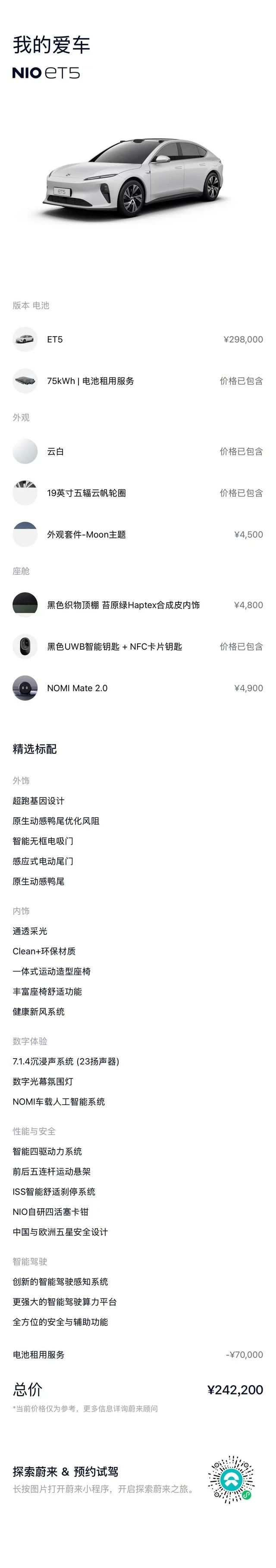 ОБЩИЕ ХАРАКТЕРИСТИКИ NIO ET5 2022 (21000 км)
