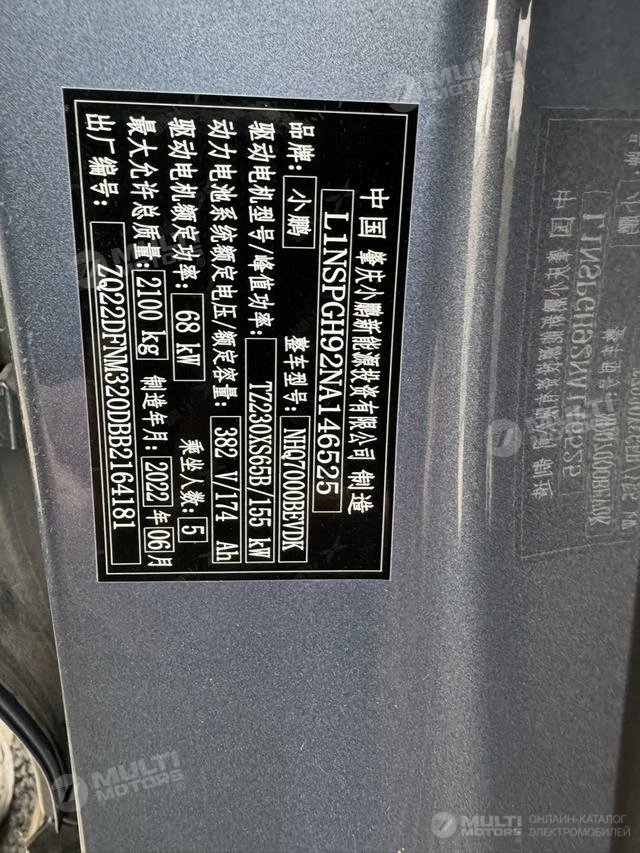 ОБЩИЕ ХАРАКТЕРИСТИКИ Xpeng P5 2022 (36400 км)
