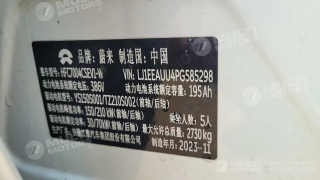 ОБЩИЕ ХАРАКТЕРИСТИКИ NIO ET5T 2023 (17000 км)