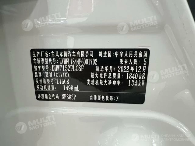 ОБЩИЕ ХАРАКТЕРИСТИКИ Honda Civic 2023 (22000 км)