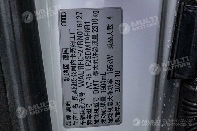 ОБЩИЕ ХАРАКТЕРИСТИКИ Audi A7 2024 (4000 км)