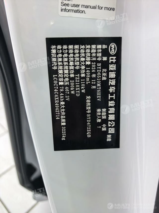 ОБЩИЕ ХАРАКТЕРИСТИКИ BYD Tang MAX 2025 (6900 км)