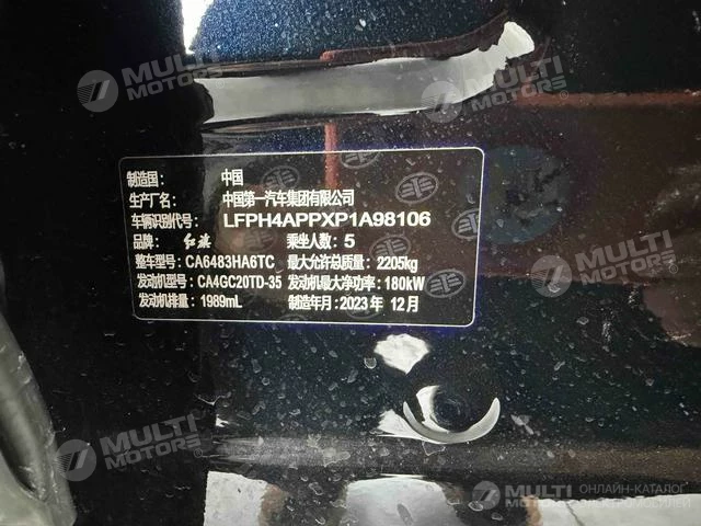 ОБЩИЕ ХАРАКТЕРИСТИКИ Hongqi HS5 2023 (27000 км)
