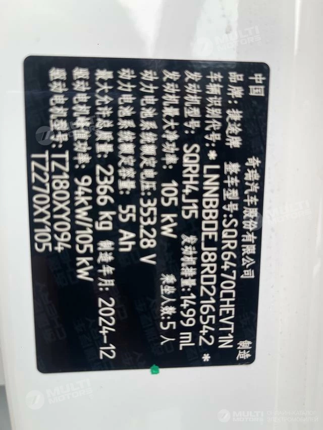 ОБЩИЕ ХАРАКТЕРИСТИКИ Chery Jetour Shanhai L7 2024 (14000 км)