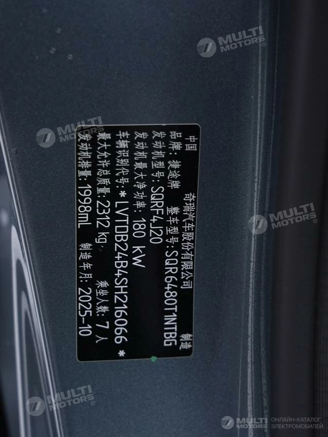 ОБЩИЕ ХАРАКТЕРИСТИКИ Chery Jetour X70L 2026 (800 км)