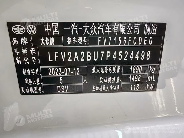 ОБЩИЕ ХАРАКТЕРИСТИКИ Volkswagen Sagitar 2023 (19800 км)