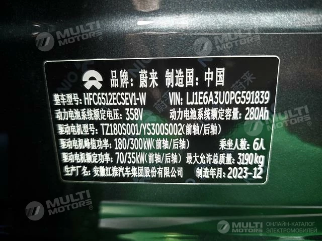 ОБЩИЕ ХАРАКТЕРИСТИКИ NIO ES8 2023 (18000 км)