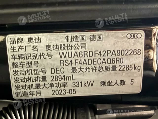 ОБЩИЕ ХАРАКТЕРИСТИКИ Audi RS 4 2023 (15000 км)