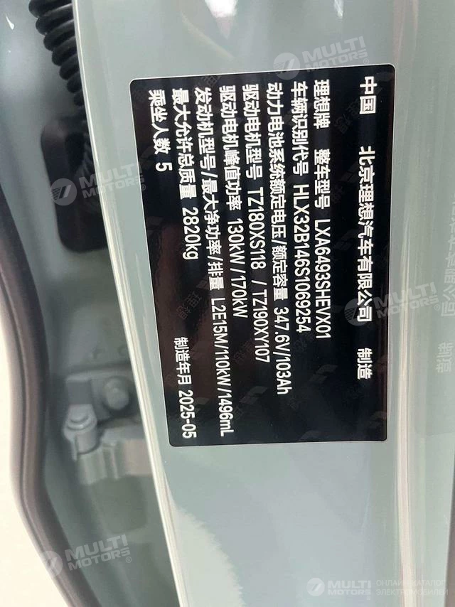 ОБЩИЕ ХАРАКТЕРИСТИКИ Li Auto L6 2025 (7900 км)