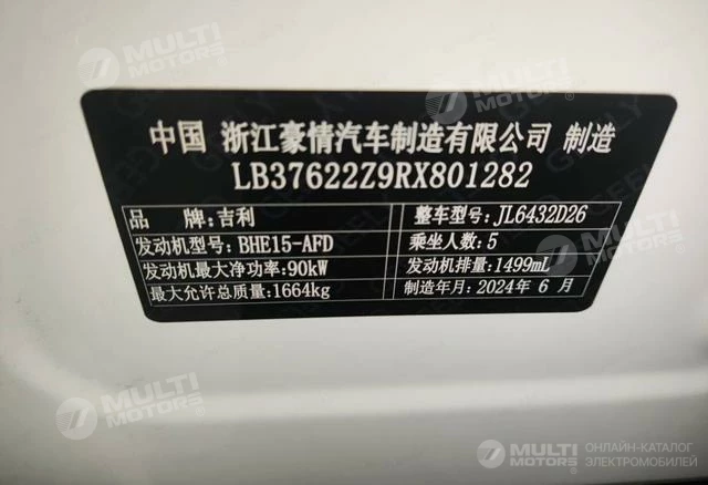 ОБЩИЕ ХАРАКТЕРИСТИКИ Geely Coolray (Binyue) 2025 (3800 км)