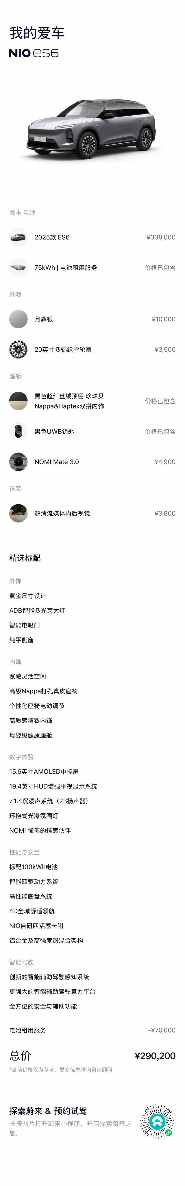 ОБЩИЕ ХАРАКТЕРИСТИКИ NIO ES6 2025 (16000 км)