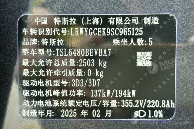 ОБЩИЕ ХАРАКТЕРИСТИКИ Tesla Model Y 2025 (21000 км)