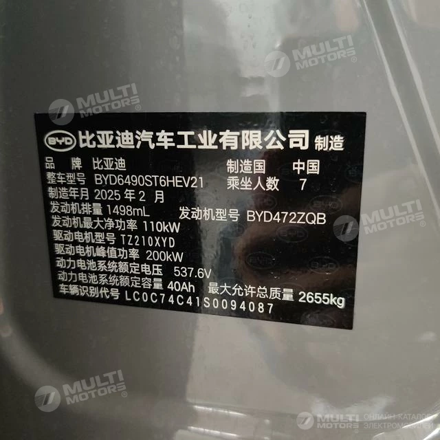 ОБЩИЕ ХАРАКТЕРИСТИКИ BYD Tang DM 2025 (4200 км)