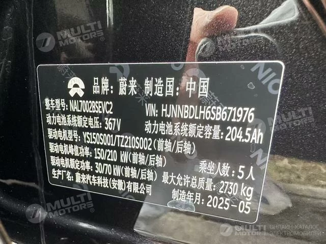 ОБЩИЕ ХАРАКТЕРИСТИКИ NIO ET5T 2025 (9000 км)