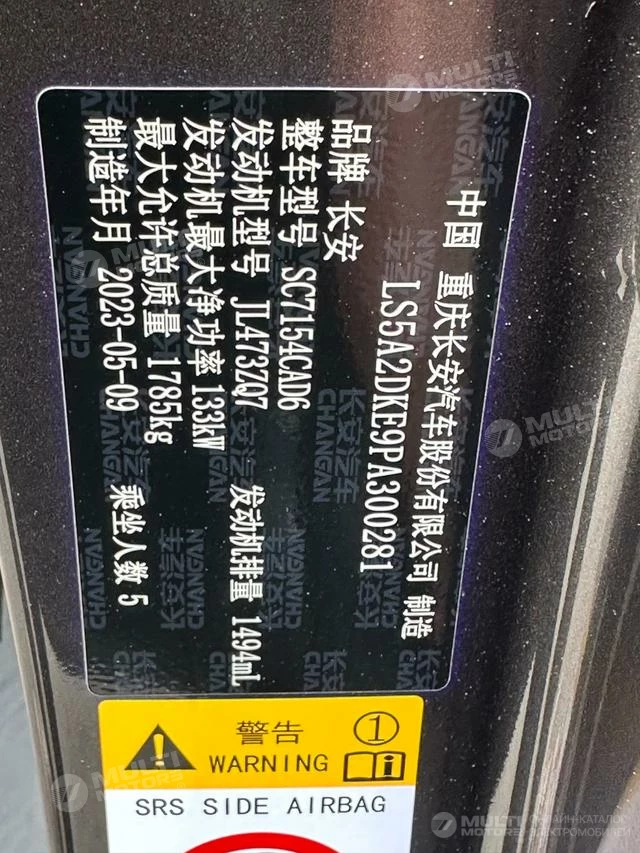 ОБЩИЕ ХАРАКТЕРИСТИКИ Changan UNI-V 2023 (29000 км)
