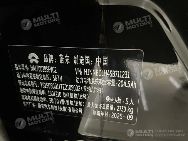 ОБЩИЕ ХАРАКТЕРИСТИКИ NIO ET5T 2025 (6700 км)