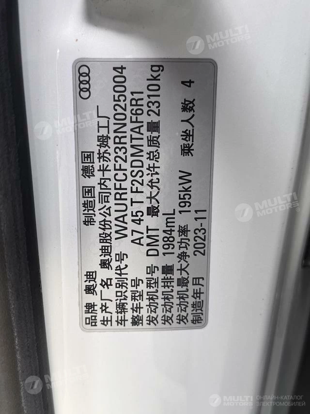 ОБЩИЕ ХАРАКТЕРИСТИКИ Audi A7 2024 (12900 км)