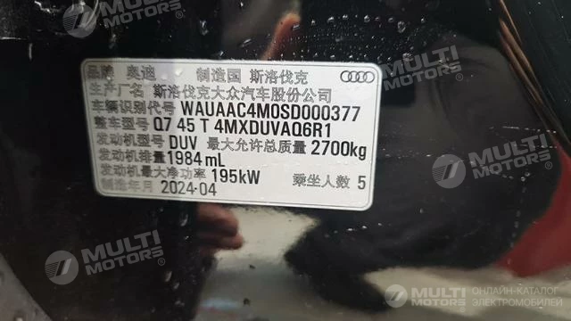 ОБЩИЕ ХАРАКТЕРИСТИКИ Audi Q7 2024 (6100 км)