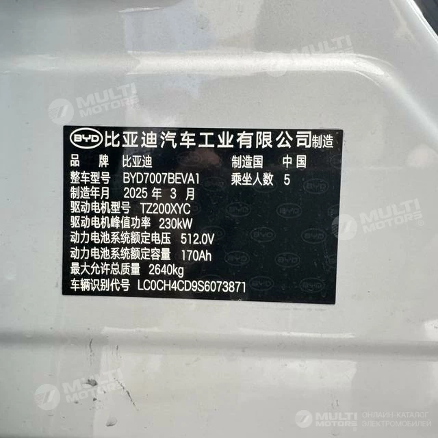 ОБЩИЕ ХАРАКТЕРИСТИКИ BYD Song L 2025 (2200 км)