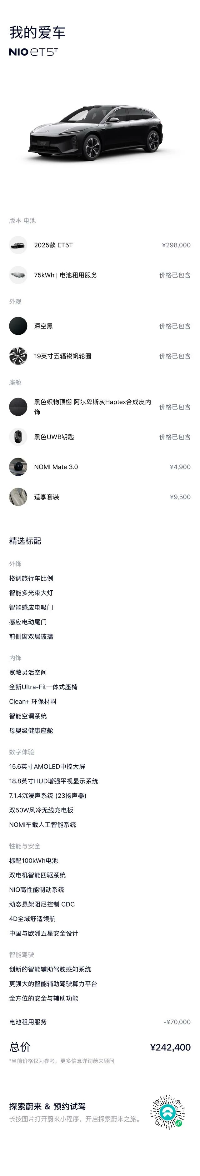 ОБЩИЕ ХАРАКТЕРИСТИКИ NIO ET5T 2025 (20000 км)