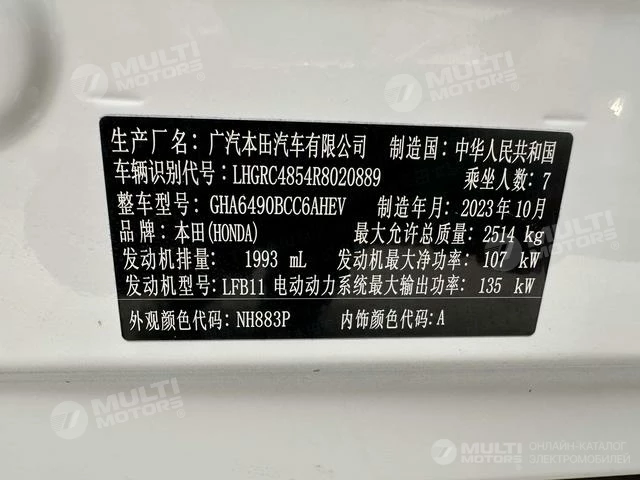 ОБЩИЕ ХАРАКТЕРИСТИКИ Honda Odyssey 2024 (26900 км)