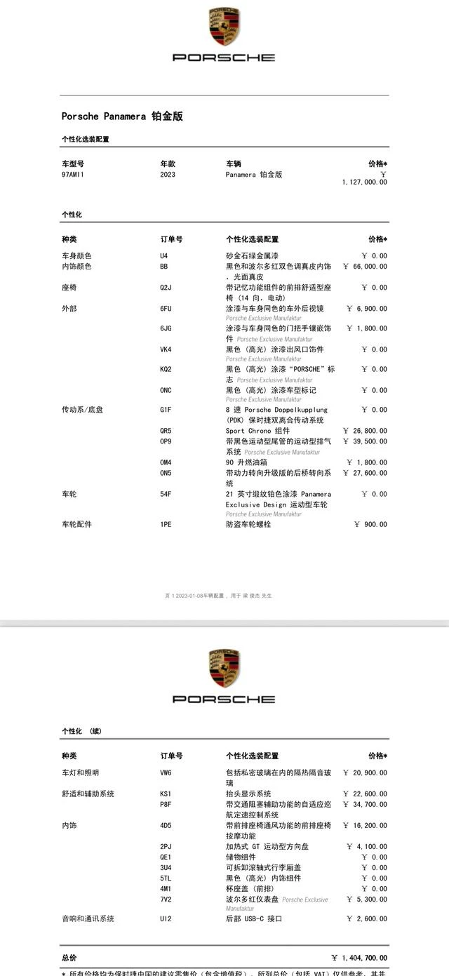 Комплектация: Panamera 2.9T Platinum
