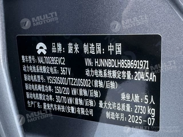 ОБЩИЕ ХАРАКТЕРИСТИКИ NIO ET5T 2025 (26500 км)