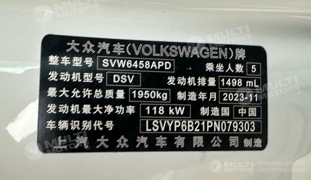 ОБЩИЕ ХАРАКТЕРИСТИКИ Volkswagen Tharu 2023 (20000 км)
