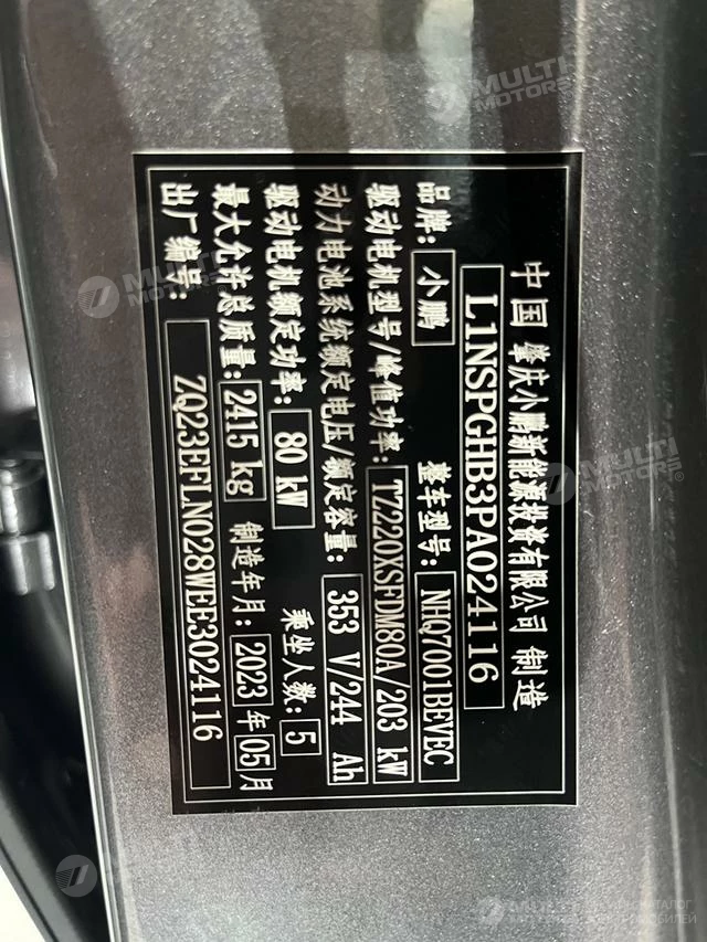 ОБЩИЕ ХАРАКТЕРИСТИКИ Xpeng P7 2023 (66000 км)