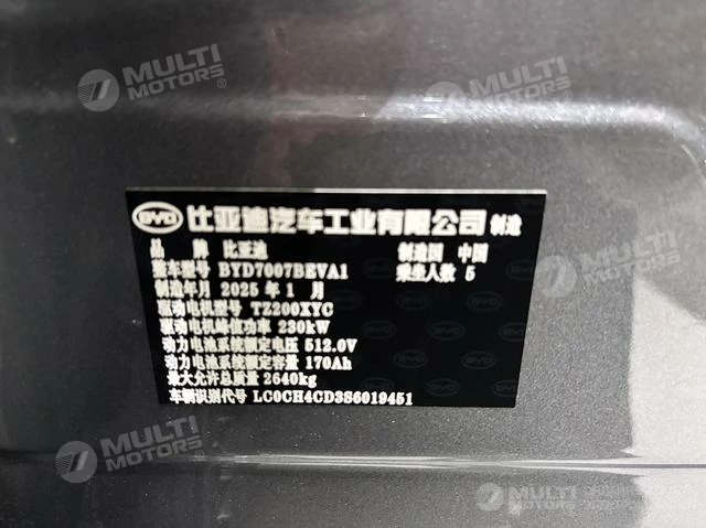 ОБЩИЕ ХАРАКТЕРИСТИКИ BYD Song L 2025 (9000 км)