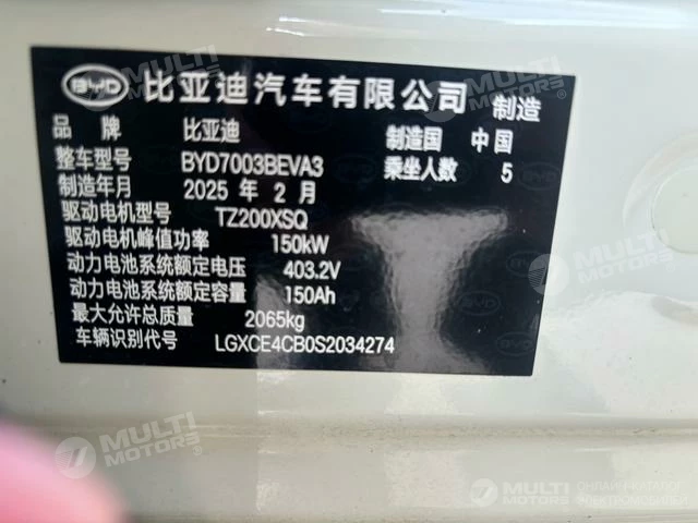 ОБЩИЕ ХАРАКТЕРИСТИКИ BYD Yuan Plus 2025 (9000 км)
