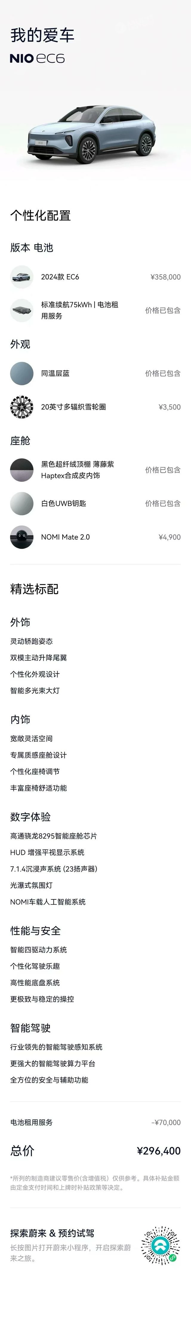 ОБЩИЕ ХАРАКТЕРИСТИКИ NIO EC6 2024 (32000 км)